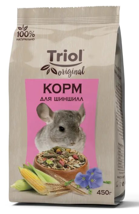 14.99 BYNTriol Original Корм для шиншилл — полнорационный корм, разработанный специально для шиншилл и дегу. Изготовлен исключительно из натуральных ингредиентов, упакован в четырехшовный пакет с плоским дном.