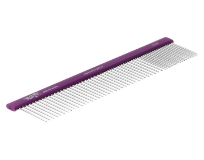 Hello Pet Расческа - это расческа с овальной фиолетовой ручкой для кошек и собак.