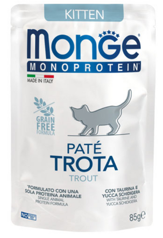 Monge Cat Mono Paté Kitten (Форель) —это полноценный и сбалансированный корм для растущих котят.