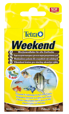 Tetra TetraMin Weekend Sticks — корм для всех видов декоративных рыб, в виде небольших блоков. Используется в отсутствие хозяина (на время отпуска или выходных). Отличный концентрированный корм, с повышенным содержанием питательных веществ и оптимально подобранным набором аминокислот.