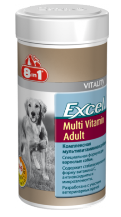 В витаминах 8in1 Excel Multi Vitamin Adult основные минеральные вещества (кальций и фосфор) подобраны в соотношении 1.4 (Са : Р), что является оптимальным для нормального развития и поддержания в прекрасной форме костно-мышечной системы организма.