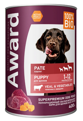 Award Puppy Паштет (Телятина с овощами) — влажный корм для щенков от 1 месяца.